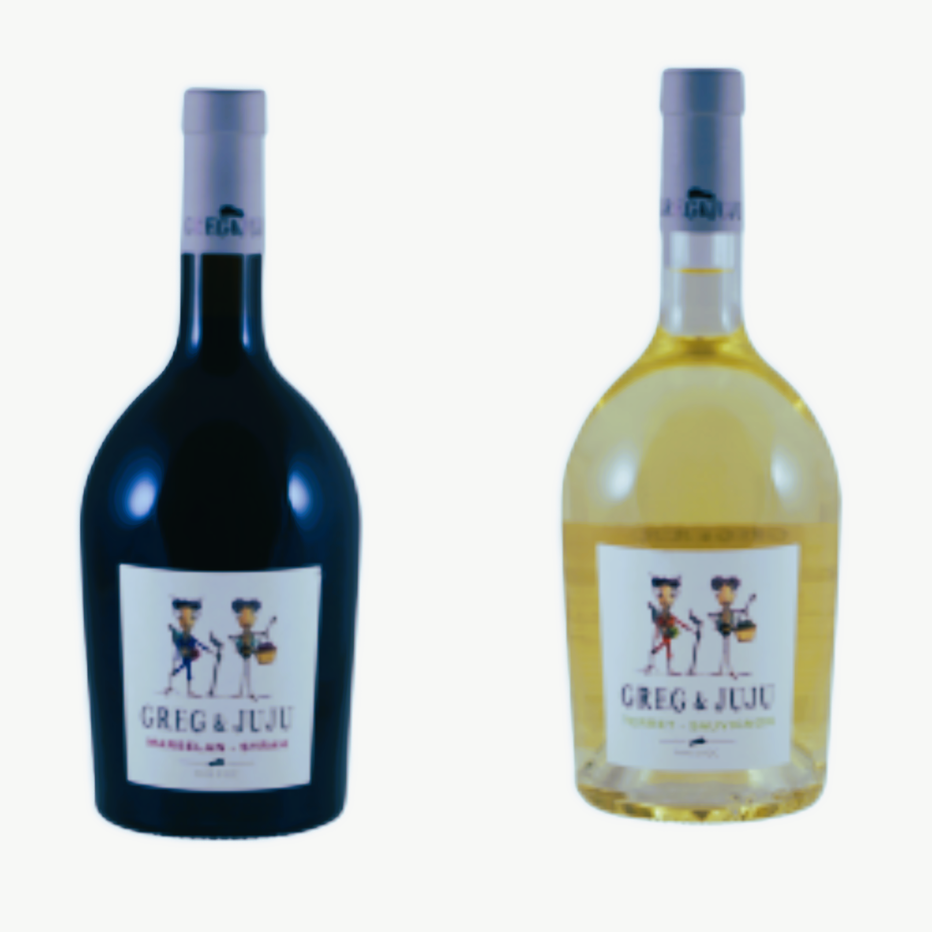 Greg & Juju Marselan-Syrah is afkomstig uit het zuiden van Frankrijk. De wijn kan omschreven worden als soepel, zacht en fijn van structuur. De kracht van de Marselan druif is de kruising van Cabernet Sauvignon en Grenache. De druif is aanwezig maar zeer toegankelijk.